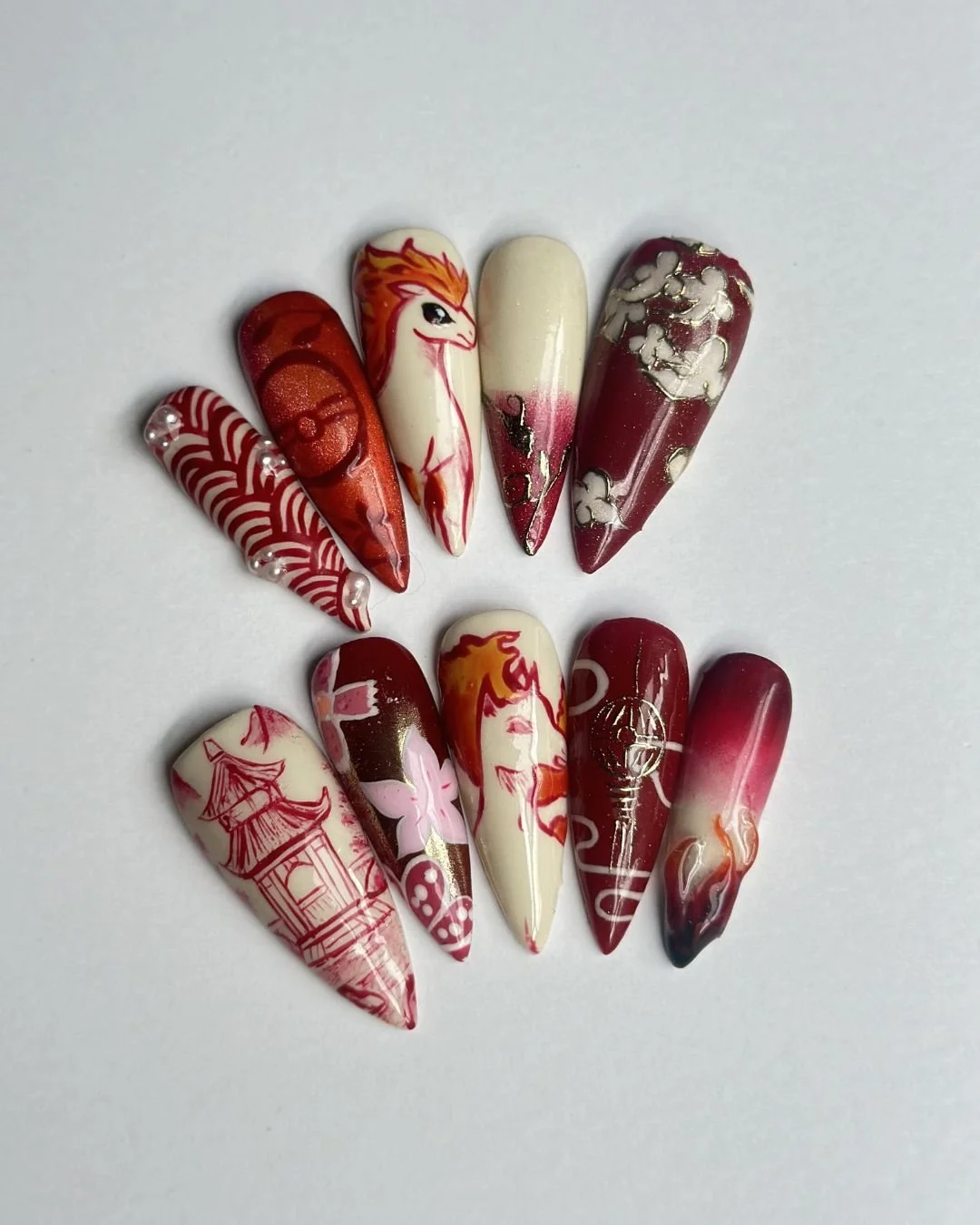 I create immersive, story-driven nail art inspired by gaming, romantasy, pop culture, and the worlds we’d rather live in.